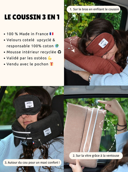 Coussin de voyage Le Petit Dormeur x Binette : Velours côtelés gris foncé 🤍