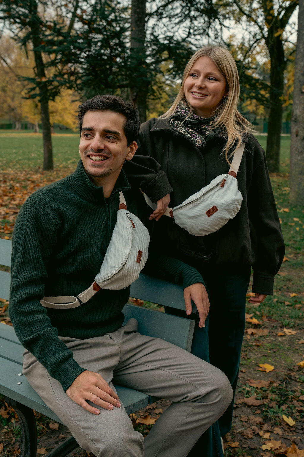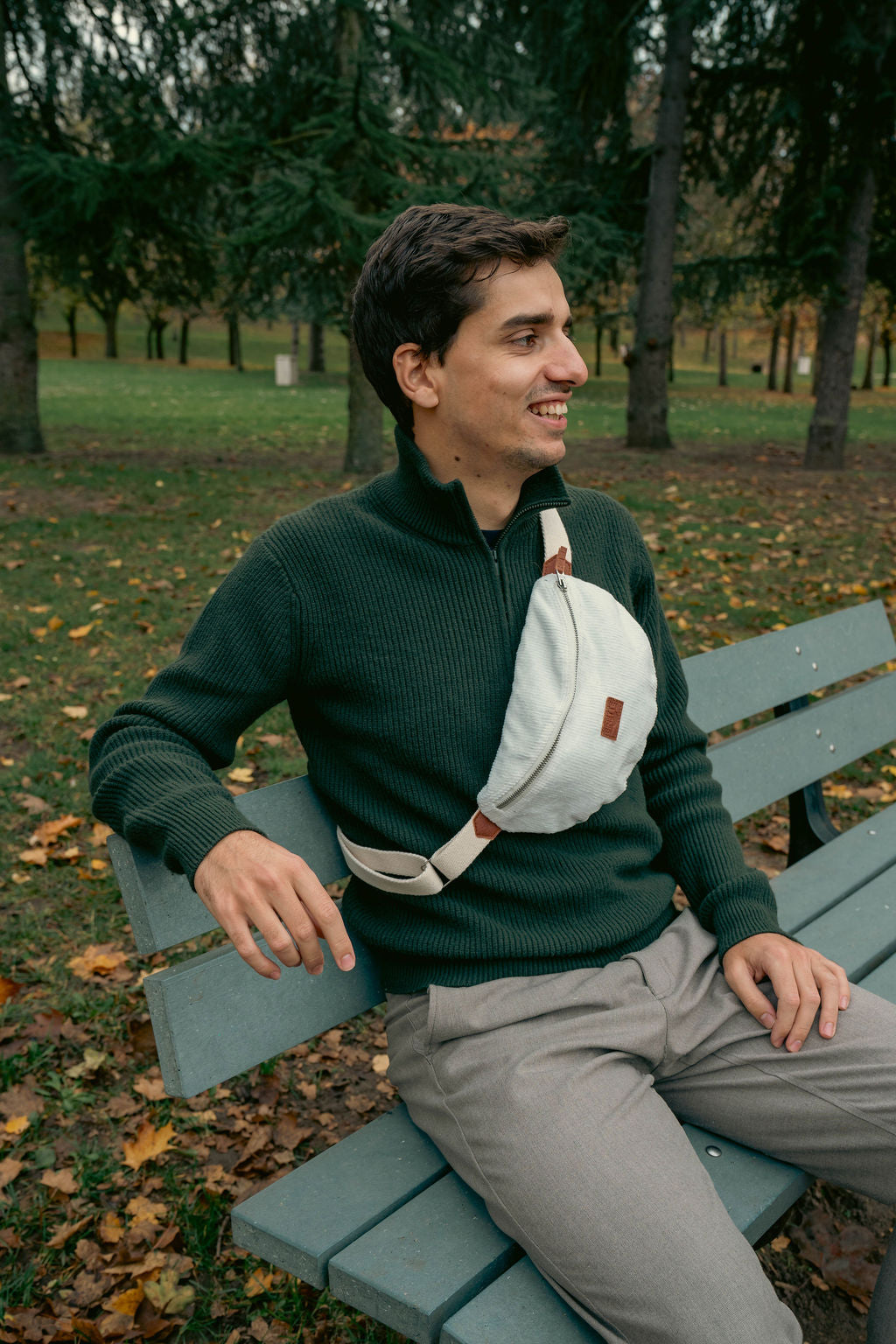 Ce sac banane en velours côtelé blanc conjugue confort et élégance.
