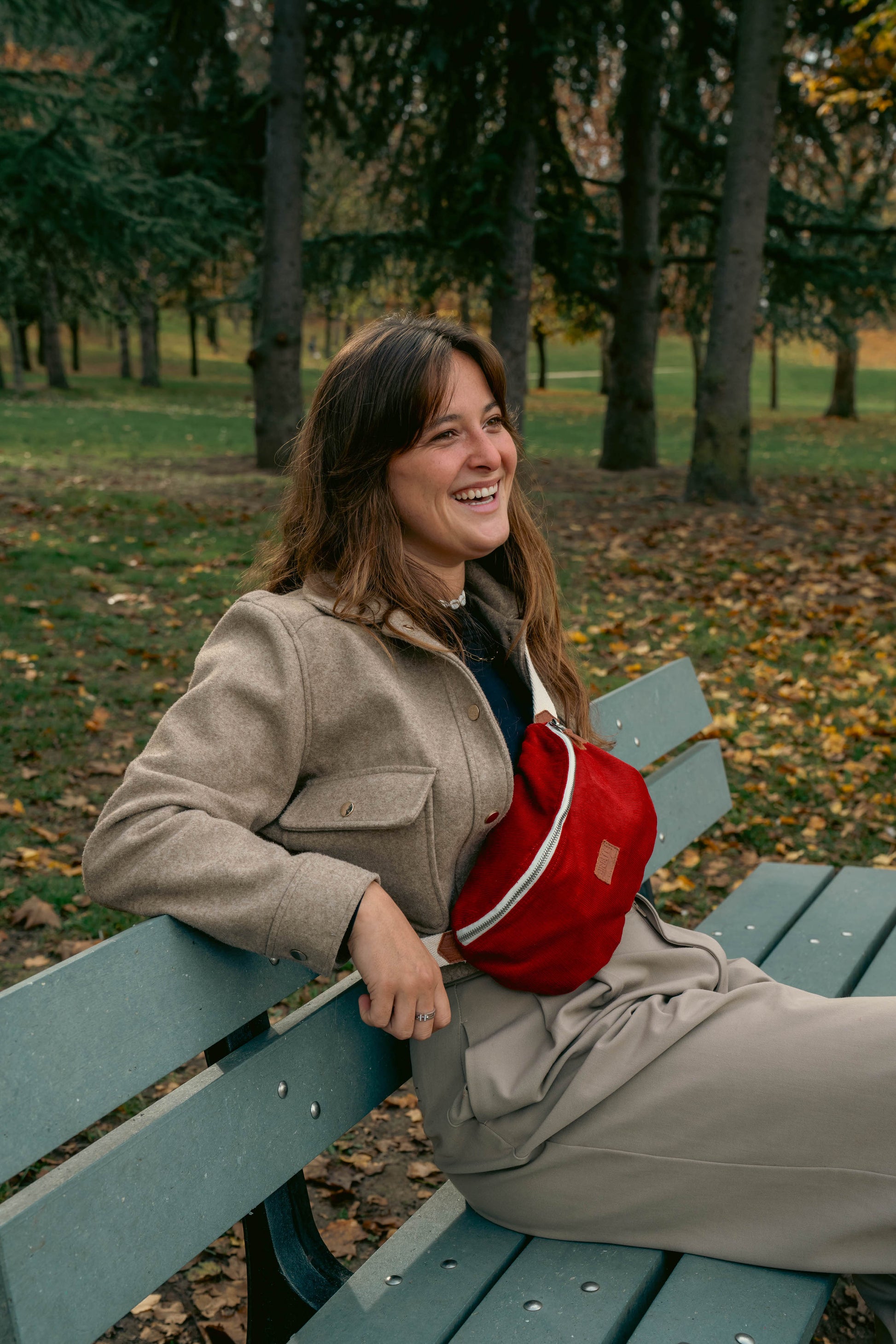 Ce sac banane en velours côtelé rouge vif conjugue confort, élégance et caractère. Sa texture douce et sa couleur éclatante en font un essentiel mode, à la fois pratique et tendance.